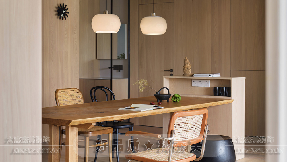 盡管原木元素在這個設計中占據了主導地位,但是現代簡約的風格也同樣明顯。設計師通過簡潔的線條、明亮的色彩和功能性的布局,創造出一個既實用又美觀的空間。