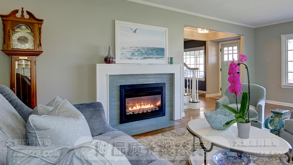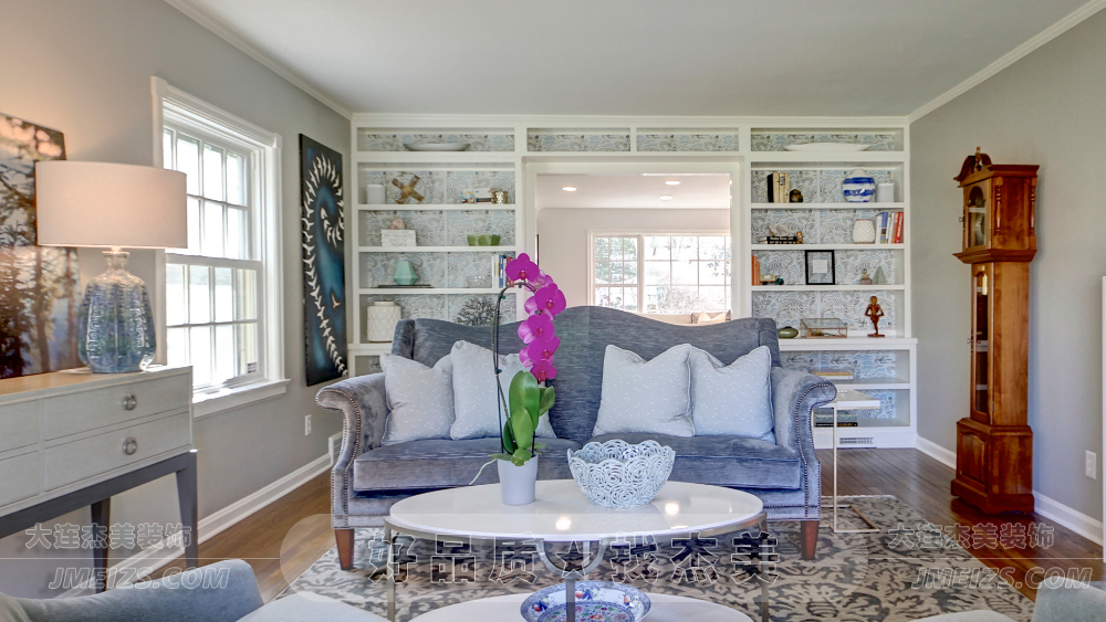 融合傳統與現代風格的開放式客廳設計,大連杰美裝飾設計師通過材質和細節處理巧妙打造舒適優雅的起居空間。