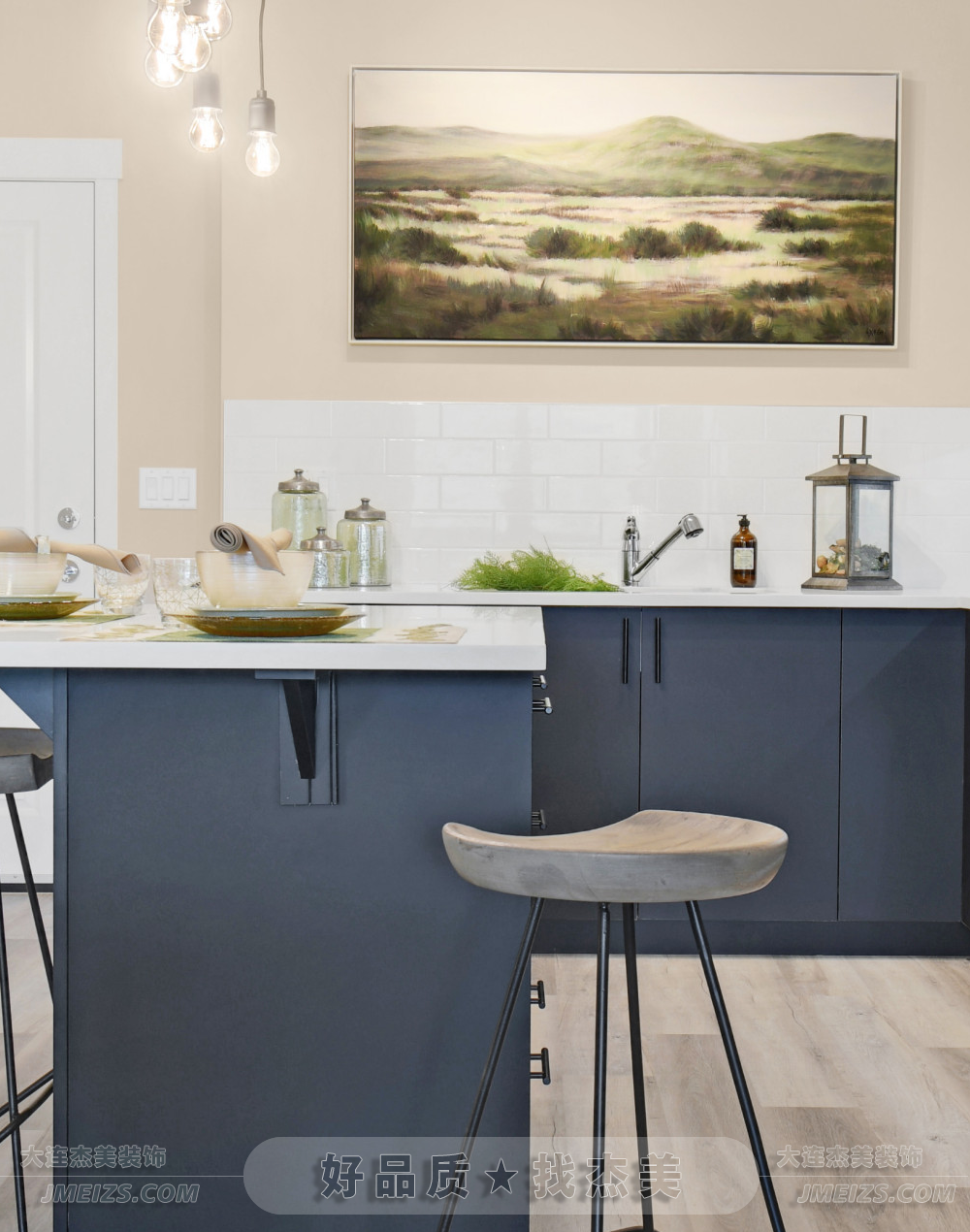 墻上的一副自然風景圖為整個廚房增添了一份生機和活力。
