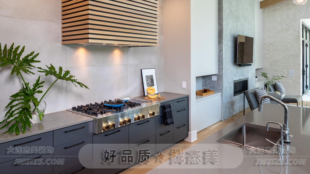 柵格裝飾的吸油煙機是這個廚房的一大亮點。這種設計既具有實用性,又具有裝飾性。它不僅能有效地吸收油煙,還能為整個廚房增添一份藝術與生活的完美結合。