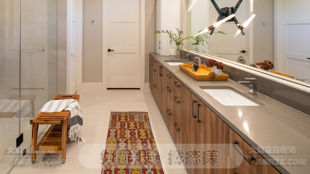 整個浴室的設計,都體現了現代美學的理念。無論是簡約的家具選擇,還是溫暖的色調,都展現了一種簡約、現代、自然的美學理念。在這里,沐浴變成了一種與自然親近的體驗,體驗現代生活的舒適與便捷。