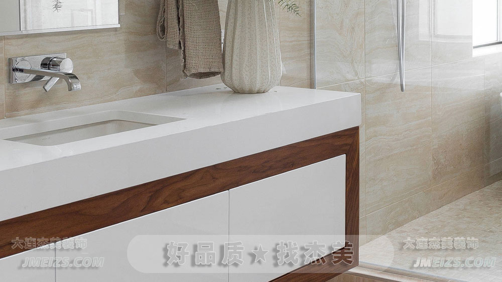 在現代家居設計中,浴室不再僅僅是一個簡單的洗浴空間,它已經成為了一個可以放松身心、享受生活的私密天地。本案浴室設計,以其淺色石材紋理的墻磚和地磚、白色與原木色的洗手臺,以及那些綠植的點綴,為我們展現了一個既自然又浪漫的生活空間。