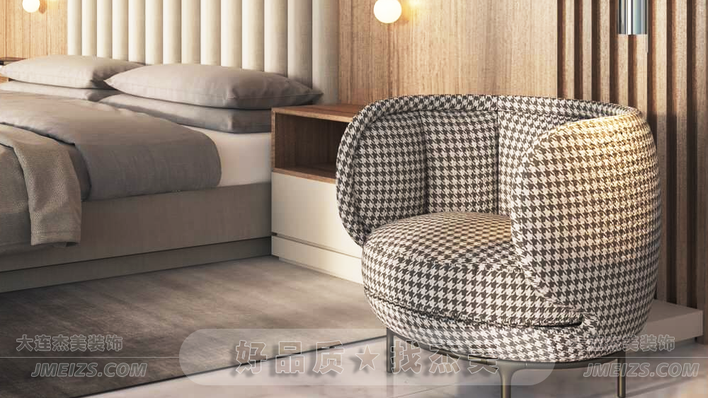 邊椅的圖案設計既有現代感又不乏優雅,成為房間的一個亮點,為整個臥室空間增添了一份獨特的個性。