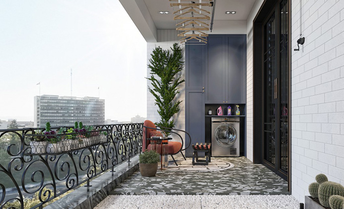 陽臺是建筑物室內的延伸,是居住者呼吸新鮮空氣、晾曬衣物、擺放盆栽的場所,其設計需要兼顧實用與美觀的原則。陽臺一般有懸挑式、 嵌入式、轉角式三類。陽臺不僅可以使居住者接受光照、吸收新鮮空氣、進行戶外鍛煉、觀賞、納涼、晾曬衣物,如果布置得好, 還可以變成宜人的小花園,使人足不出戶也能欣賞到大自然中最可愛的色彩,呼吸到清新且帶著花香的空氣。